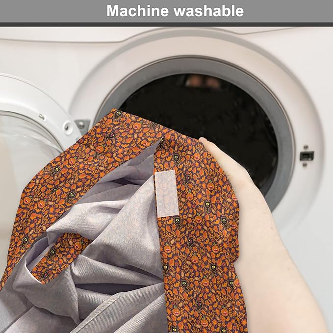 Lunarable Vintage Halloween Dog Crate Cover, Halloween Themed Elements on a Purple Background Scary Mosters, Easy to Use Pet Kennel Cover for Cats & Medium Dogs, 24 Inch, Dark Purple Orange
