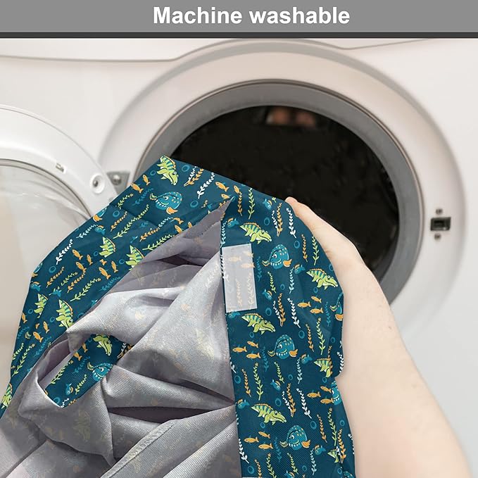 Lunarable Jurassic Dog Crate Cover, Evolution Marine Dinosaurs and Nautical Foliage Animal, Easy to Use Pet Kennel Cover for Cats & Medium Dogs, 24 Inch, Petrol Blue Pale Green
