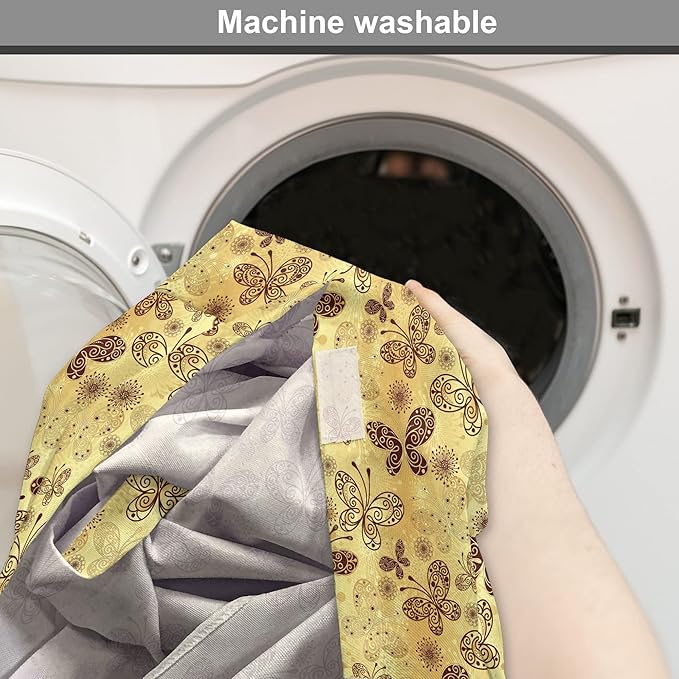 Lunarable Yellow and Brown Dog Crate Cover, Butterflies with Lace Style Ornament Spring Season Beauty Nature Print, Easy to Use Pet Kennel Cover for Small Dogs Puppies Kittens, 18 Inch, Chestnut Brown