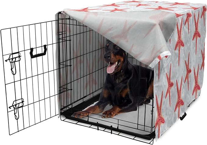 Lunarable Starfish Dog Crate Cover, Tropical Ocean with Sea Bubbles on Wavy Spiral Backdrop, Easy to Use Pet Kennel Cover for Medium Large Dogs, 42 Inch, Dark Coral Salmon