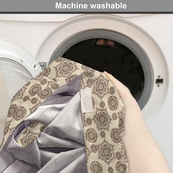 Lunarable Cream Dog Crate Cover, Vintage Eastern Inspired Design with Symmetrical Elements Abstract Flower Arrangement, Easy to Use Pet Kennel Cover for Medium Large Dogs, 42 Inch, Tan Brown