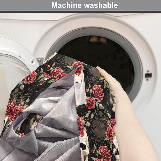 Lunarable Halloween Dog Crate Cover, Mexican Sugar Skull Rose Bouquets Spooky Traditional Humour Culture, Easy to Use Pet Kennel Cover for Medium Large Dogs, 48 Inch, Black Grey