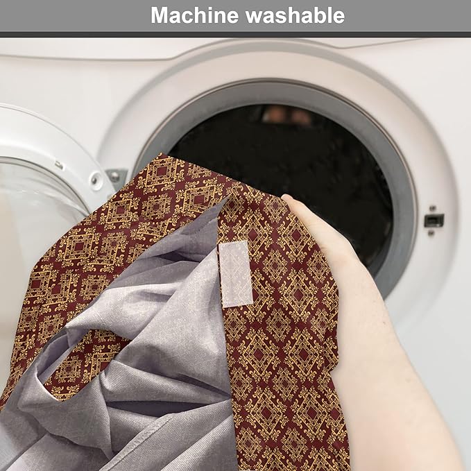 Lunarable Burgundy Dog Crate Cover, Royal Victorian Pattern with Antique Design Elements Baroque Swirls Squares, Easy to Use Pet Kennel Cover for Cats & Medium Dogs, 24 Inch, Burgundy Mustard