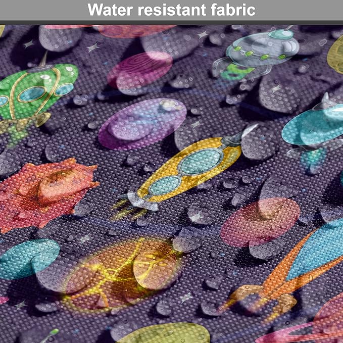Lunarable Outer Space Dog Crate Cover, Cartoon Planets and Space Ships with Space Background Fun Science, Easy to Use Pet Kennel Cover for Cats & Medium Dogs, 24 Inch, Dark Blue