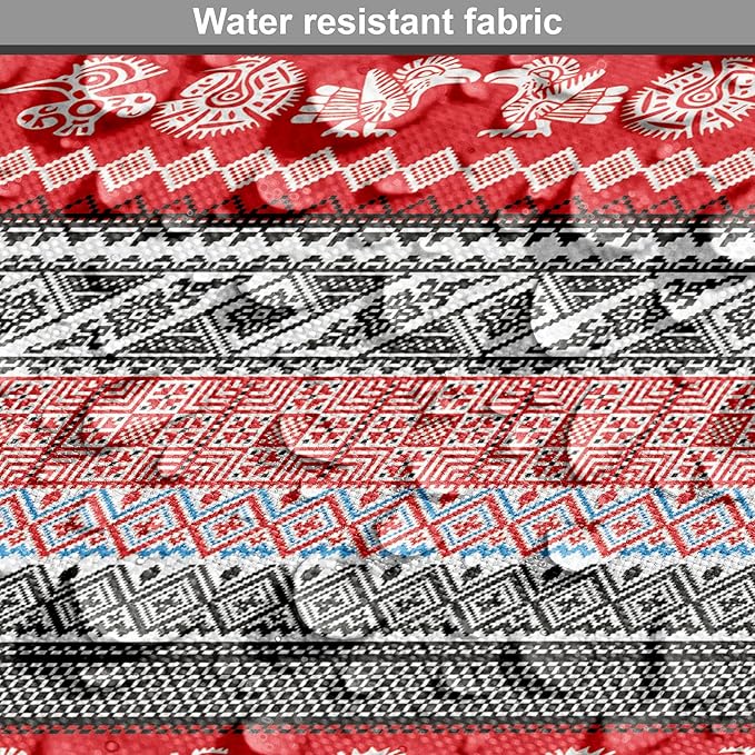 Lunarable Aztec Dog Crate Cover, Bird Motifs Abstract Indigenous Style Squares Latin American Inspired, Easy to Use Pet Kennel Cover for Medium Large Dogs, 48 Inch, Red Black White