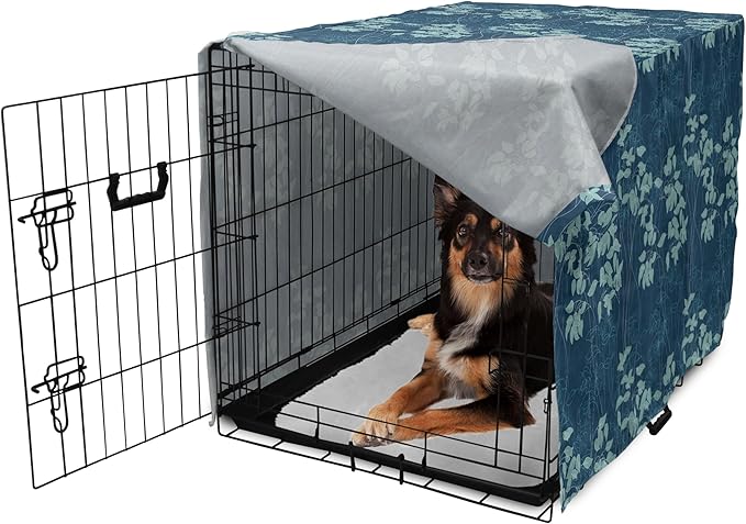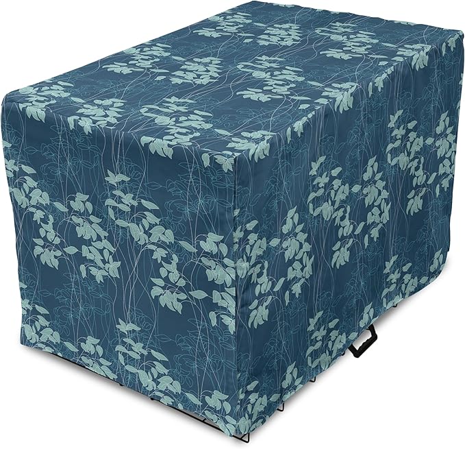 Lunarable Blue Floral Dog Crate Cover, Abstract Leaves and Outlines Rural Field Garden Foliage Art, Easy to Use Pet Kennel Cover for Cats & Medium Dogs, 30 Inch, Green Night