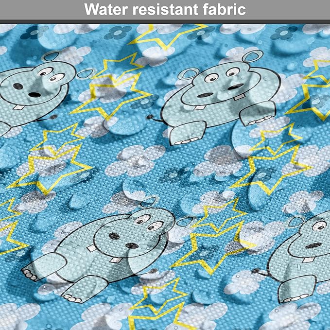 Lunarable Yellow and Blue Dog Crate Cover, Funny Cartoon Hippopotamus with Stars and Daisy Flowers, Easy to Use Pet Kennel Cover for Medium Large Dogs, 42 Inch, Pale Blue White Yellow