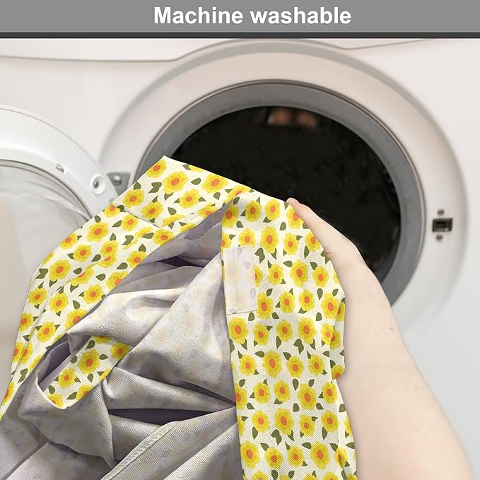 Lunarable Daffodil Dog Crate Cover, Retro Abstract Small Bedding Plants Flourishing Meadow Girls Design, Easy to Use Pet Kennel Cover for Medium Large Dogs, 48 Inch, Yellow Green Orange
