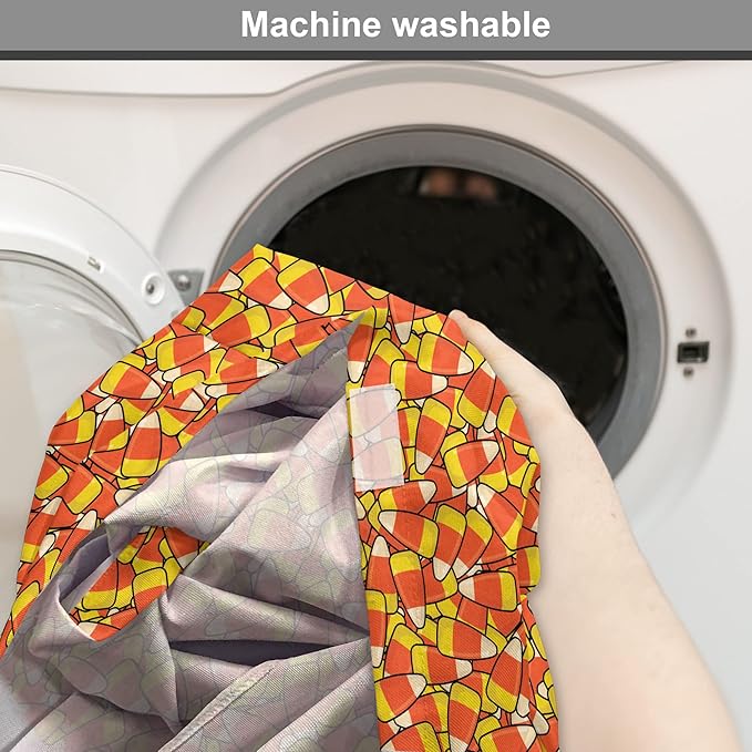 Lunarable Candy Corn Dog Crate Cover, Continuous Illustration of Cartoon Style Traditional Halloween Items, Easy to Use Pet Kennel Cover for Small Dogs Puppies Kittens, 18 Inch, Vermilion Mustard
