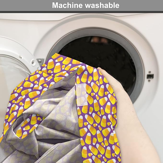 Lunarable Candy Corn Dog Crate Cover, Halloween Themed Pattern of Irregular Tasty Junk Food for Comfort, Easy to Use Pet Kennel Cover for Cats & Medium Dogs, 24 Inch, Violet Earth Yellow