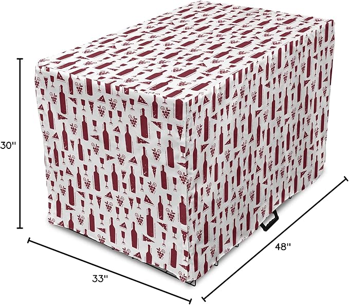 Lunarable Drinks Dog Crate Cover, Illustration of Grunge Style Wine Bottles Glasses Cheese and Grapes Vintage, Easy to Use Pet Kennel Cover for Medium Large Dogs, 48 Inch, Maroon and White