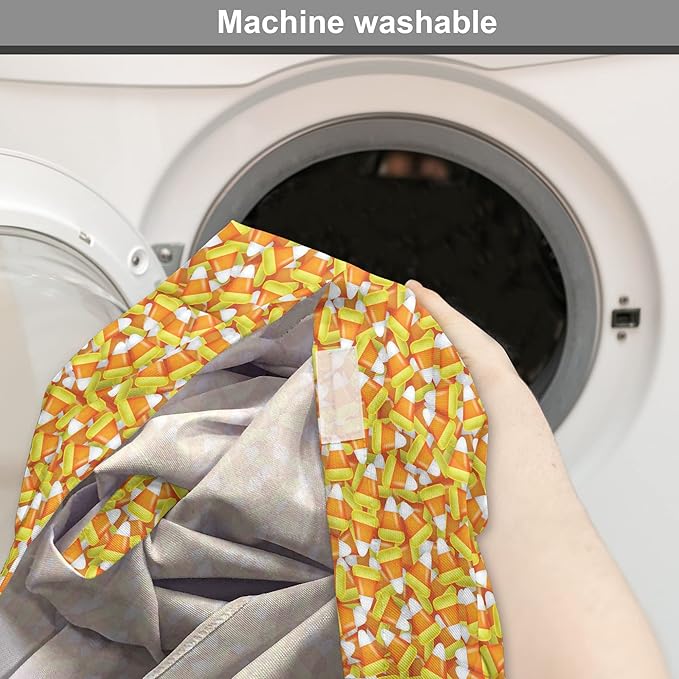Lunarable Candy Corn Dog Crate Cover, Halloween Design of Cartoon Style Foods Scattered Randomly, Easy to Use Pet Kennel Cover for Small Dogs Puppies Kittens, 22 Inch, Apricot Avocado Green