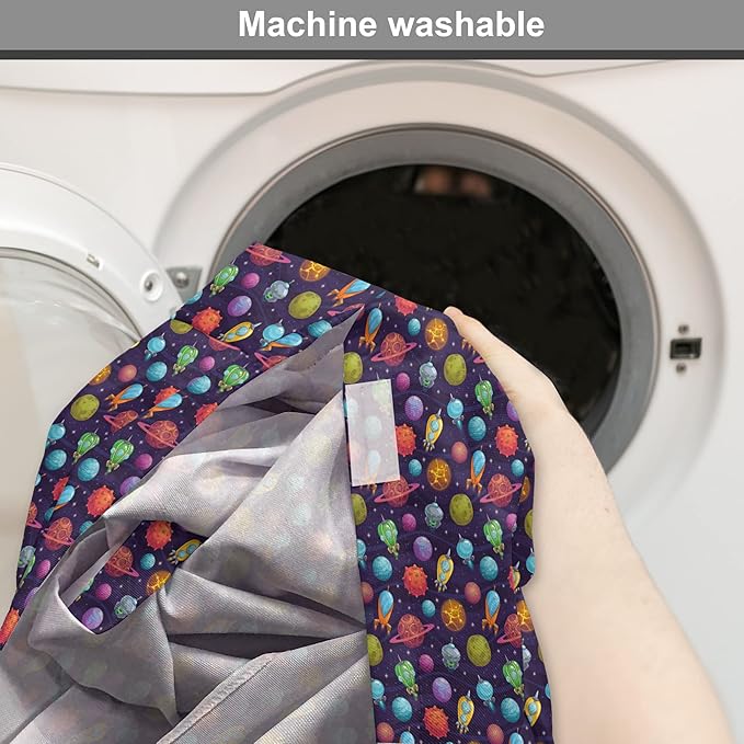 Lunarable Outer Space Dog Crate Cover, Cartoon Planets and Space Ships with Space Background Fun Science, Easy to Use Pet Kennel Cover for Small Dogs Puppies Kittens, 18 Inch, Dark Blue