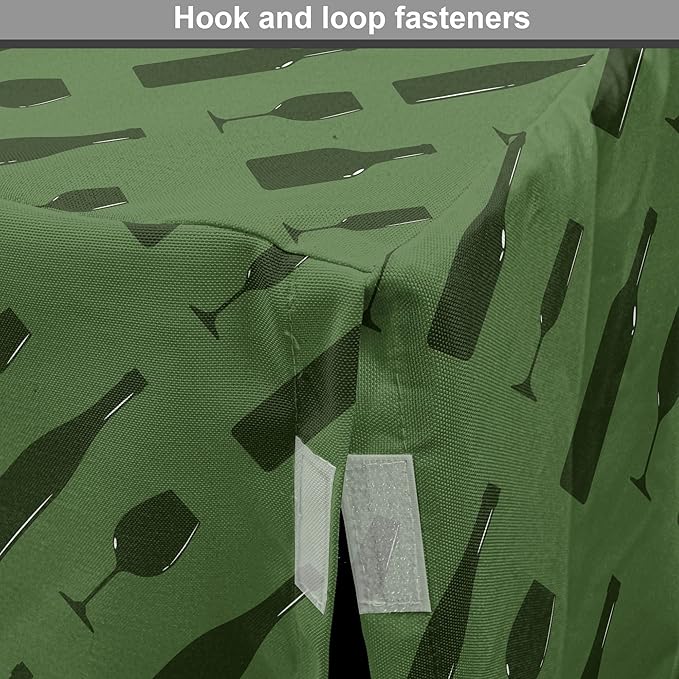 Lunarable Drinks Dog Crate Cover, Monotone Style Shapes of Wine Bottles and Glasses Diagonally Arranged, Easy to Use Pet Kennel Cover for Cats & Medium Dogs, 30 Inch, Reseda Green Olive Green