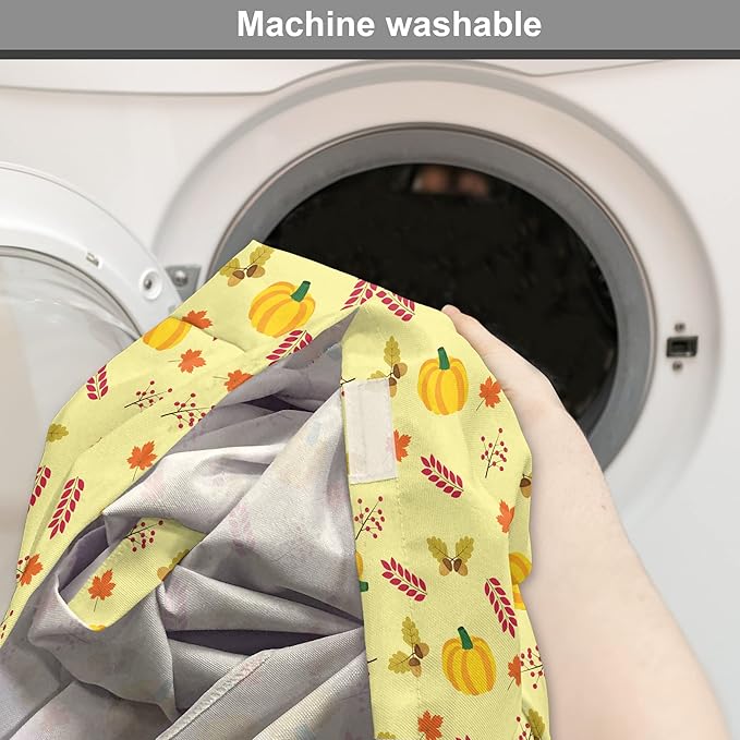 Lunarable Autumn Pumpkin Dog Crate Cover, Seasonal Image with Fall Botanical Elements Leaves and Acorns, Easy to Use Pet Kennel Cover for Cats & Medium Dogs, 24 Inch, Pastel Yellow Multicolor