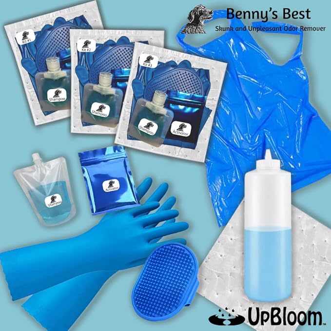 UpBloom - Benny's Best Pet Skunk and Odor Eliminator Shampoo Deodorizer Kit Buddy - Dog, Cat and Pet Skunk Shampoo and Accessories - Bathing Supplies and Odor Remover Products for Smelly Dogs and Cats