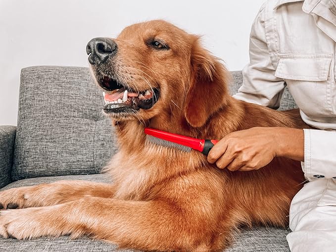- ★ PET COMB w/ COMFORT-GRIP ANTI-SLIP HANDLE - Our dog combs for dematting provide a rubberized comfortable hand grip, allowing for a confident grip even with wet hands. Ergonomic design prevents hand and wrist strain for all day use for professional groomers.