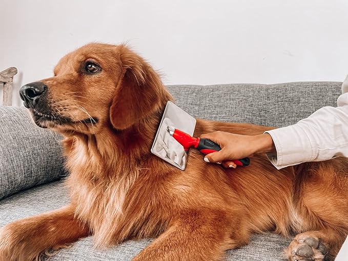 - LESS EFFORT TO IMPROVE GROOMING EFFICIENCY - Used by professional groomers, our fast and efficient dog and cat slicker brush features soft stainless-steel pins that gently brush away loose hair, undercoat, mats, and tangles. Our brush grooms and massages for a healthy coat, increasing blood circulation and leaves your pet’s coat soft and shiny. Your Pet will love being brushed!
