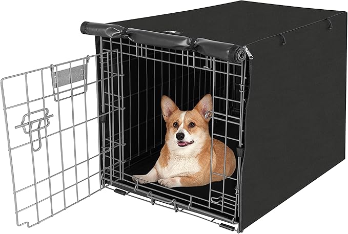 X-ZONE PET Double Door Dog Crate Cover - Polyester Pet Kennel Cover (Fits 24 30 36 42 48 inches Wire Crate) (30 Inch, Black)