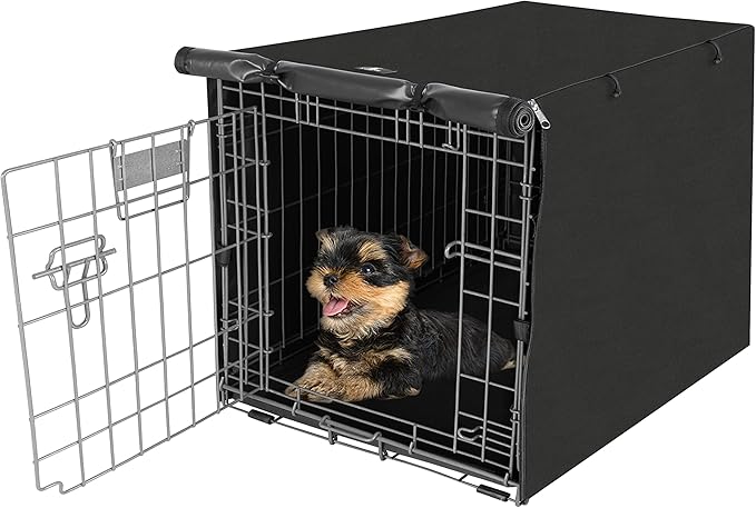 X-ZONE PET Double Door Dog Crate Cover - Polyester Pet Kennel Cover (Fits 24 30 36 42 48 inches Wire Crate) (24 Inch, Black)