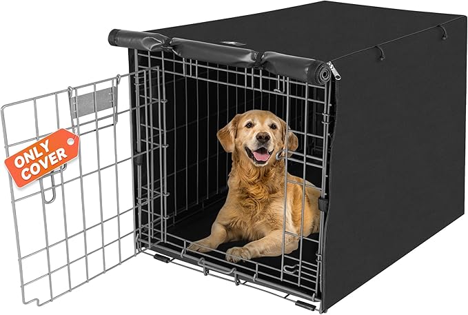 X-ZONE PET Double Door Dog Crate Cover - Polyester Pet Kennel Cover (Fits 24 30 36 42 48 inches Wire Crate) (42 Inch, Black)