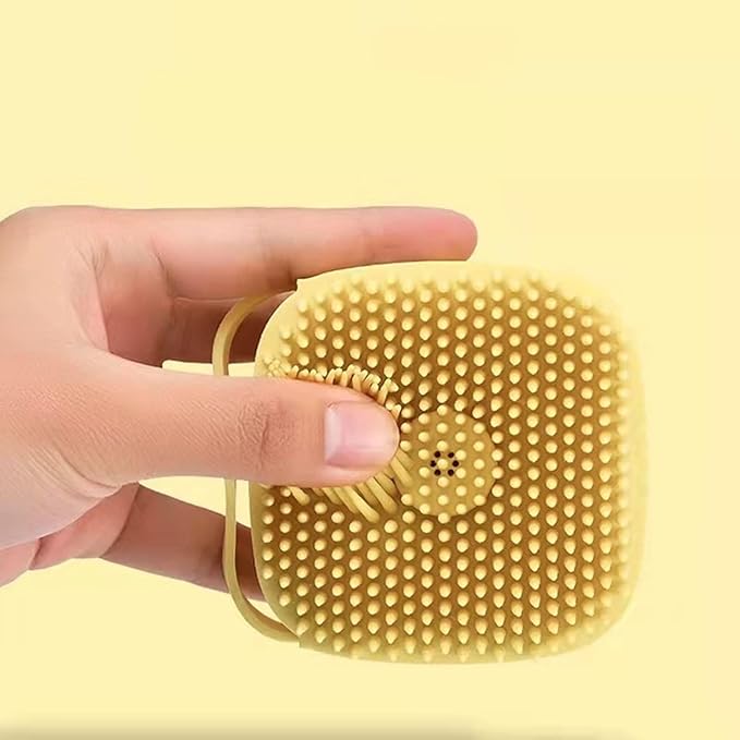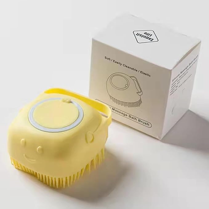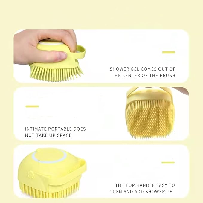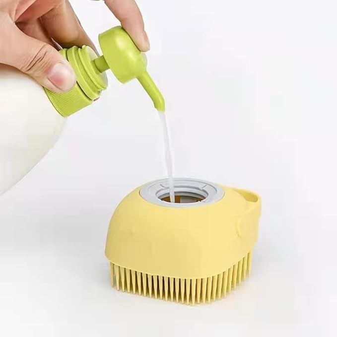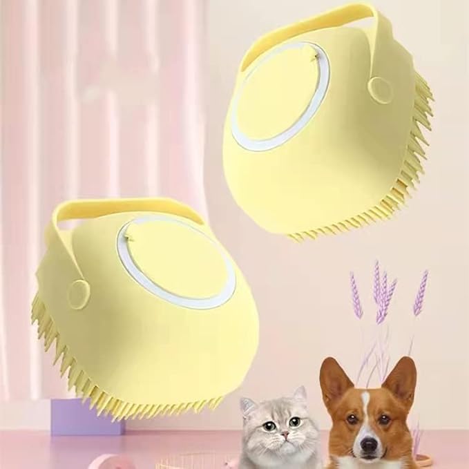 Pet Dog Bath Brush Soft Silicone Dog Shampoo Brush, Fur Grooming Cleaning Brush Shampoo Dispenser (Yellow)