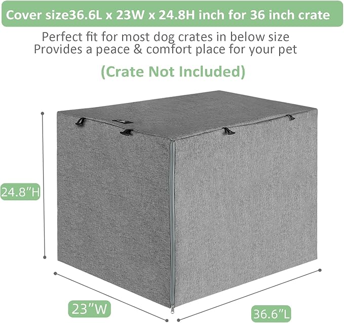 - 【Dimension】: 36.6”(L)x 23” (W)x 24.8”(H). Universal fits your 36" crate well.Package included 1 x crate cover (without metal crate).