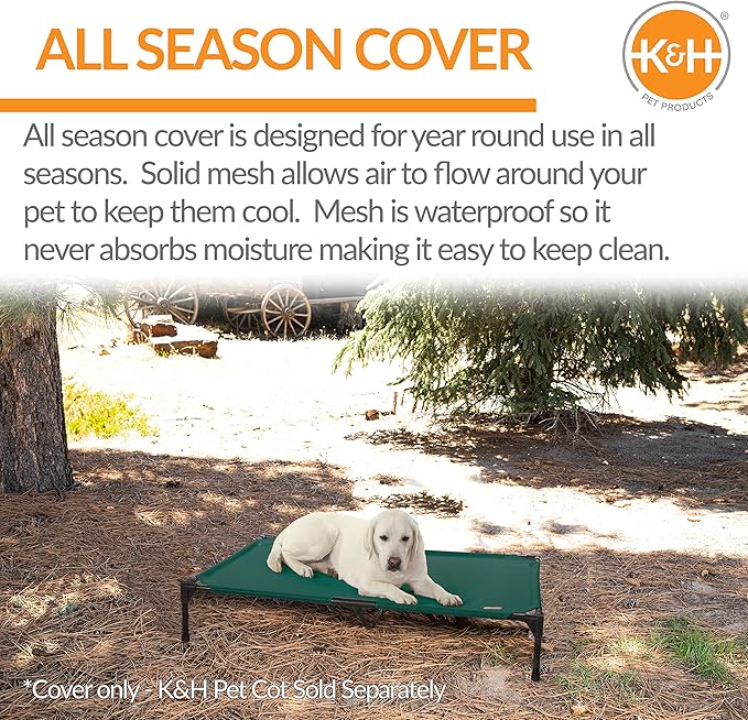 K&H Pet Products Elevated Cooling Outdoor Dog Bed Portable Raised Dog Cot Replacement Cover Only All Weather All Season Green X-Large 50 X 32 Inches (Cot NOT Included)