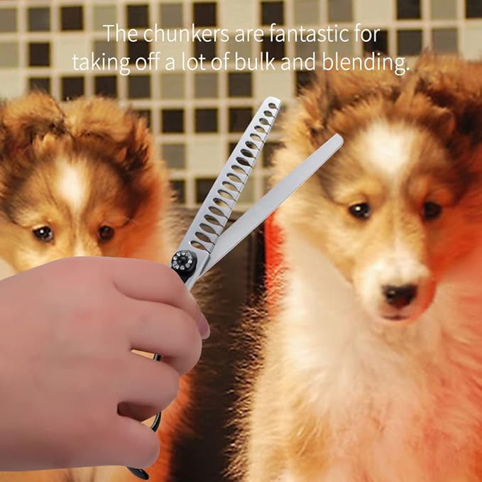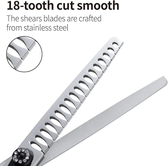 Fenice Peak 7.5'' Dog Chunker Scissors For Grooming 440C Stainless Steel Black Non-Slip Handle Sharp Blades Professional Pet Trimming Scissors for Cats Thinning Rate 75%