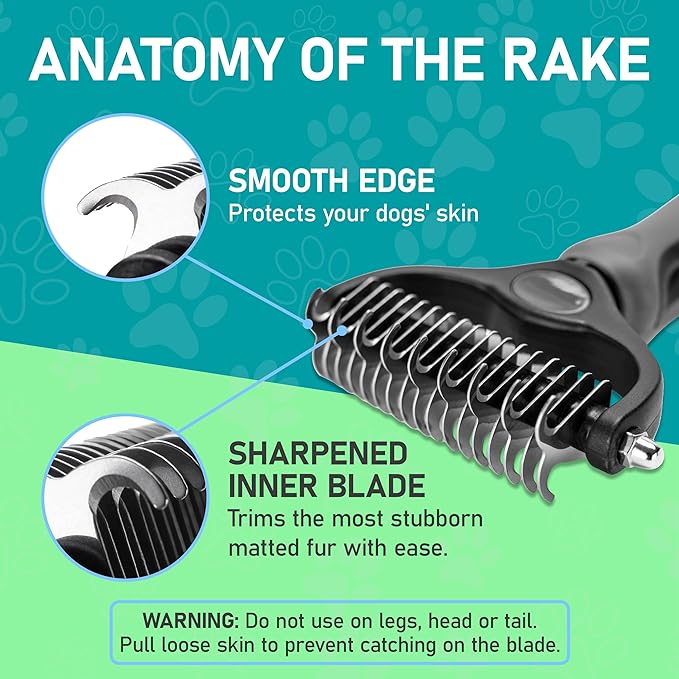 - EFFECTIVE DESHEDDING TOOL: Our dematting and deshedding tool gently removes loose hair and eliminates tangles, knots, dander, and trapped dirt. The perfect cat brush or dog grooming brush solution for pets with thick fur or dense double coats.