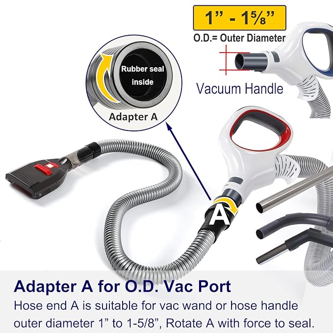 - Compatibility: Fit most vacuums, like: Shark Bissell Hoover Miele Eureka Dirt Devil Electrolux Shop-Vac Wet Dry Central vacs, Adapter A for vac O.D.(outside diameter) of 1" to 1.6", B for I.D. (inner size) of 1.25" to 1.75"; Not for triangular/non-circular or 2.5"; PLS check vacuum port size (know adapter A or B is suitable) before order
