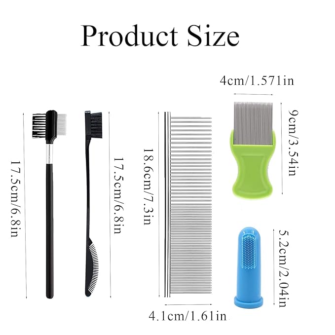 - 🐾 Good Combination: Our tear stain remover combs have 5 pieces, and each of them has different functions. And we have 1 piece silver long comb with wide and narrow teeth, 1 piece green comb with short teeth, 2 piece black plastic double combs, and 1blue piece finger shape soft comb. You can use them as you need.