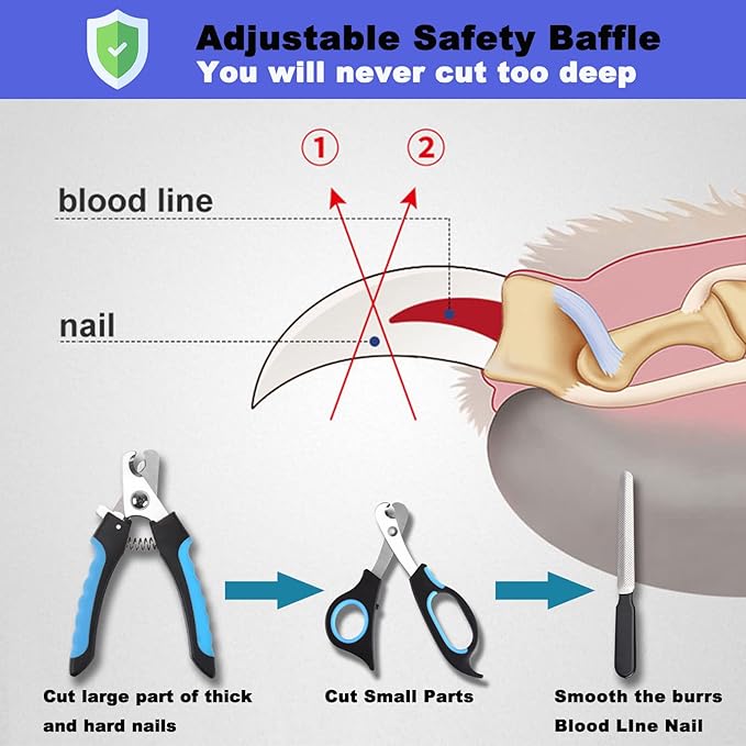 - 【Friendly Design】Precise and safe cutting is easy with our semi-circular blade. Your pet's nails sit in a semi-circle - you can see exactly where you're cutting - no guesswork required. The rounded tip design of the blade will prevent children from using it or harming your pet. Non-slip rubber coated handle ensures grip