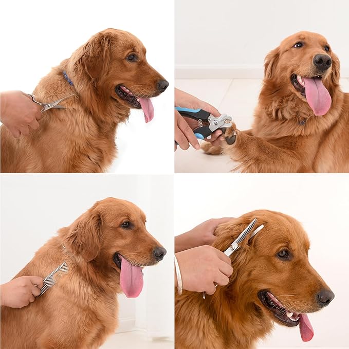 Dog Nail Clippers Trimmer Set, Safety Guard to Avoid Over-Cutting,Dog Grooming Comb Rake Undercoat Brush,Dog Grooming Scissors Shear Kit,6 in 1 Dog Grooming Tools Supplies for Small Large Cat Pet