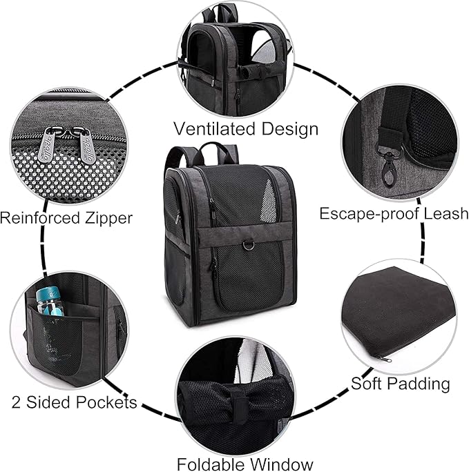 - ESCAPE PROOF- The last thing you want is an escaped pet running around the airplane cabin or outdoors. APOLLO WALKER pet backback carrier keeps your pet safe and secure while flying, walking, cycling, or hiking with claw-proof mesh and reinforced zippers. Carrier also has a leash tether to attach to your dog or cat’s collar if you decide to open the top window to let your pet stick their head out.
