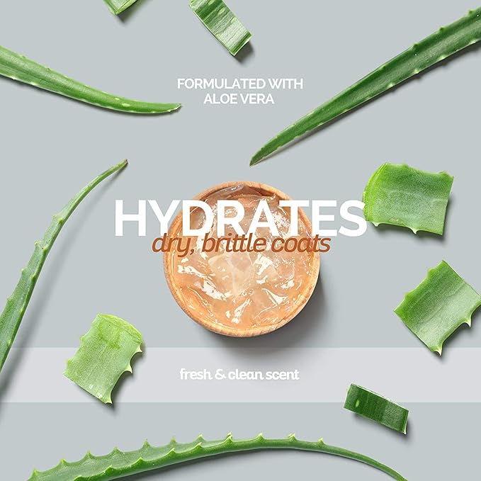 - Aloe Vera Infused - Infuses deep moisture and hydration into the skin and coat, detangling while repairing damaged hair.