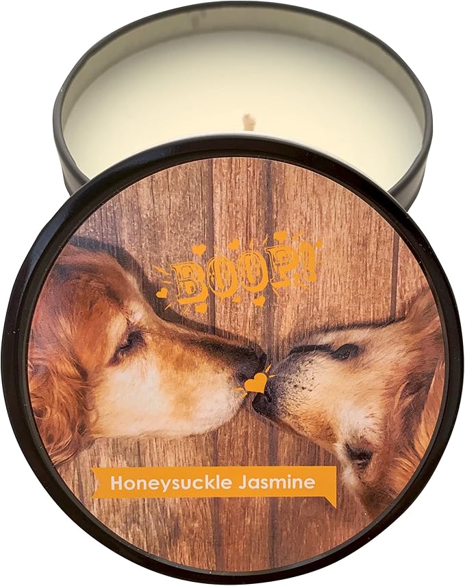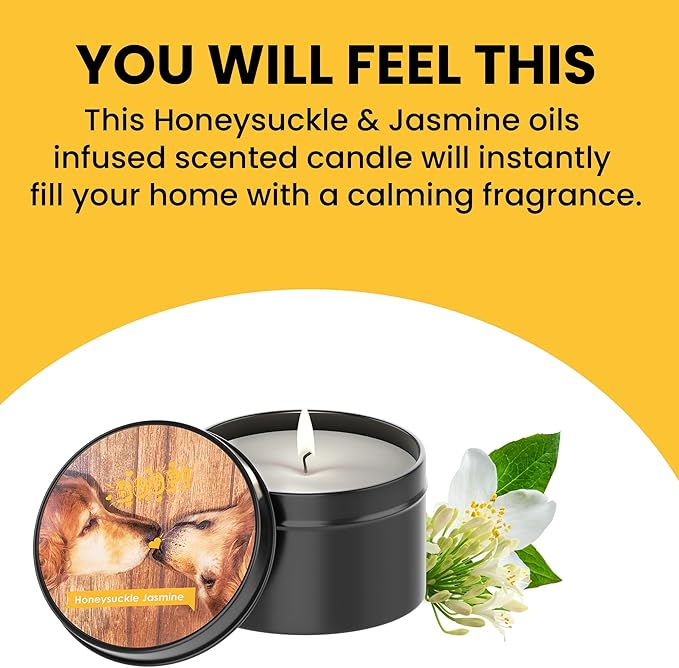 Scented Candle in Tin - Handcrafted Aromatherapy Candle for Pets - Pet-Friendly and No Harsh Chemicals Soy Candle - Burns up to 60 Hours - Honeysuckle Jasmine