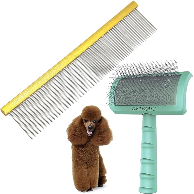 Metal Grooming Comb for Dogs 7.5inches and Dog Slicker Brushes for Long Thick Coat Dogs and Cats.