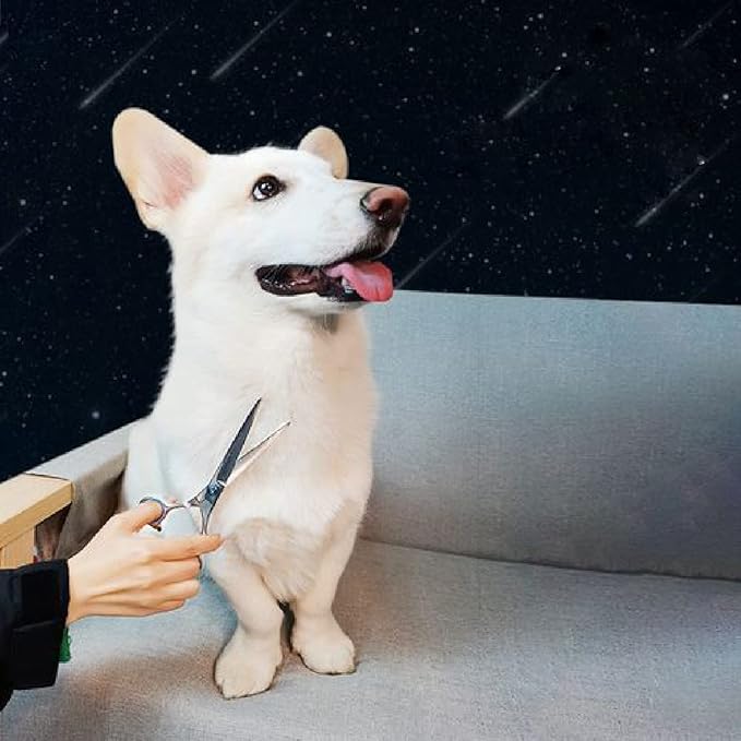 - UPDATED NEWLY IMPROVED SCREW : Dog grooming scissors feature an upgraded newly-designed, super strong screw to keep the blades tightly together.The tension of the blade of the dog grooming scissors can be adjusted as needed.