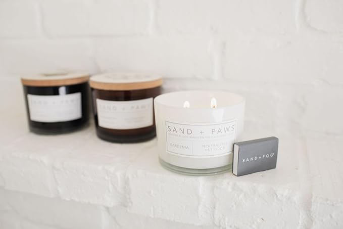 Sand + Paws Scented Candle - Gardenia - Additional Scents and Sizes –Luxurious Air Freshening Jar Candles Neutralize pet Odors and Enhance Home décor – 100% Cotton Lead-Free Wicks - 12 oz