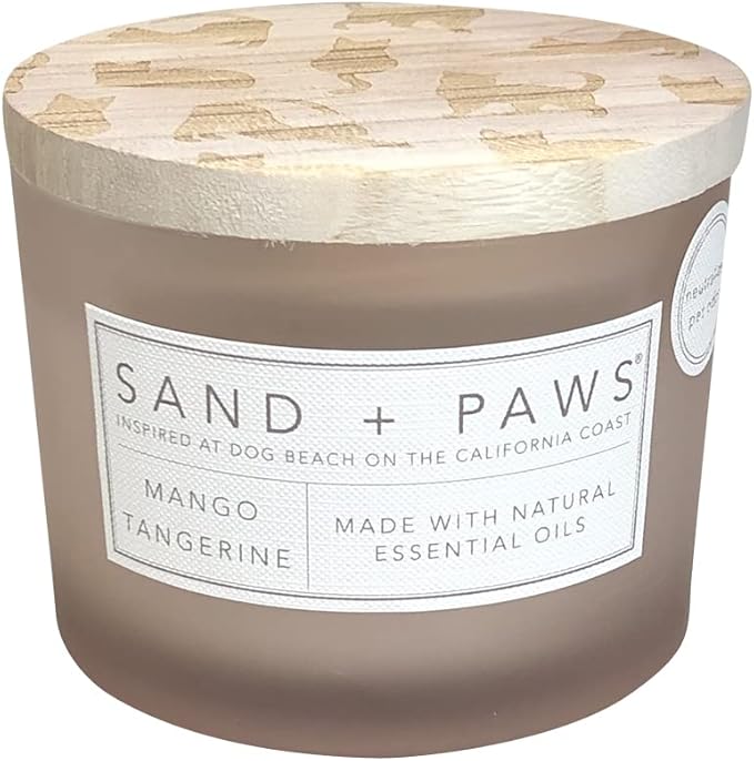 Sand + Paws Scented Candle - Mango Tangerine - Luxurious Air Freshening Jar Candles Neutralize pet Odors and Enhance Home décor – 100% Cotton Lead-Free Wicks - 12 oz