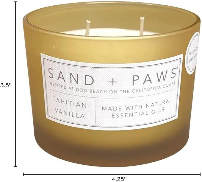 Sand + Paws Scented Candle - Tahitian Vanilla –Luxurious Air Freshening Jar Candles Neutralize pet Odors and Enhance Home décor – 100% Cotton Lead-Free Wicks - 12 oz