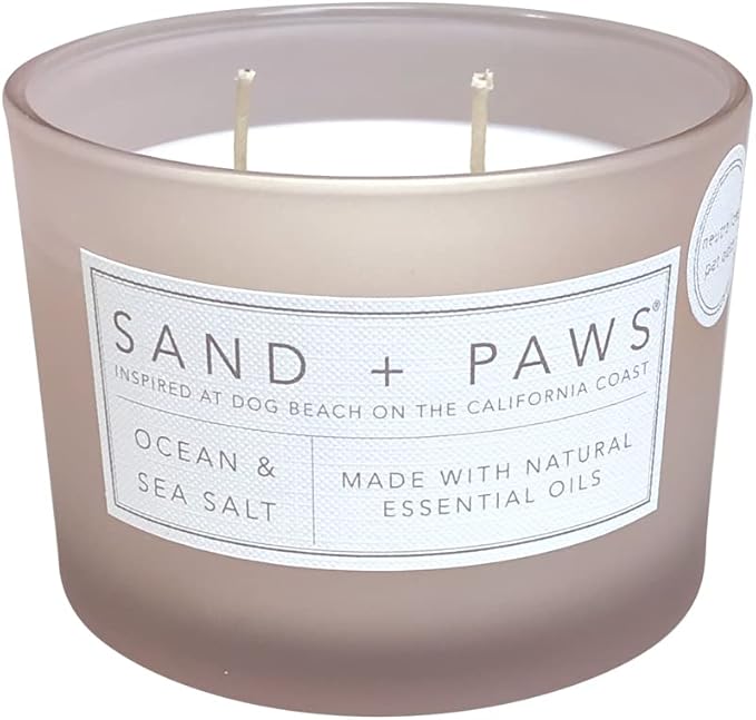 Sand + Paws Scented Candle - Ocean & Sea Salt –Luxurious Air Freshening Jar Candles Neutralize pet Odors and Enhance Home décor – 100% Cotton Lead-Free Wicks - 12 oz