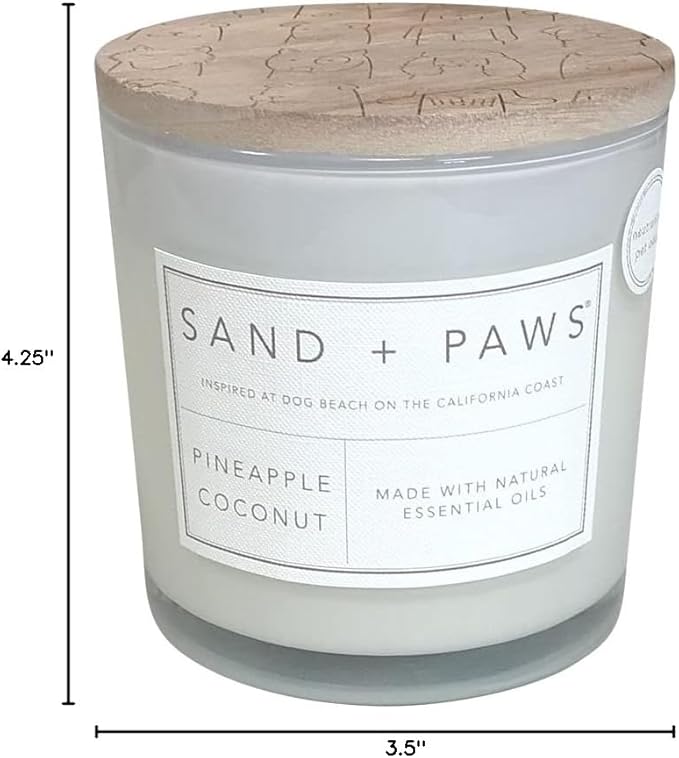 Sand + Paws Scented Candle - Pineapple Coconut - Additional Scents and Sizes –Luxurious Air Freshening Jar Candles Neutralize pet Odors and Enhance Home décor – 100% Cotton Lead-Free Wicks - 21 oz