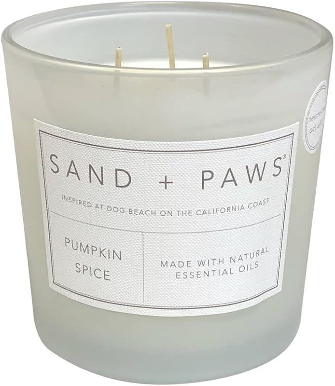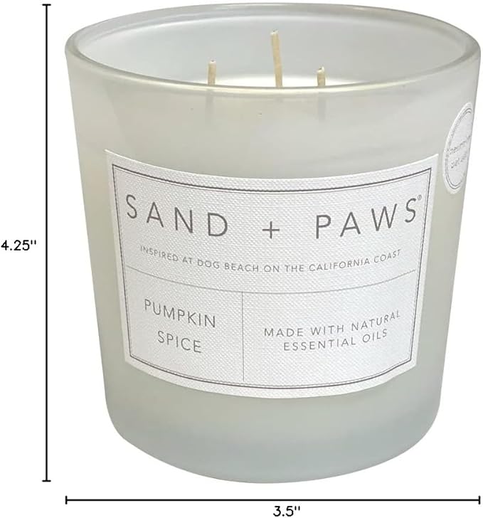 Sand + Paws Scented Candle - Pumpkin Spice - Additional Scents and Sizes –Luxurious Air Freshening Jar Candles Neutralize pet Odors and Enhance Home décor – 100% Cotton Lead-Free Wicks - 21 oz