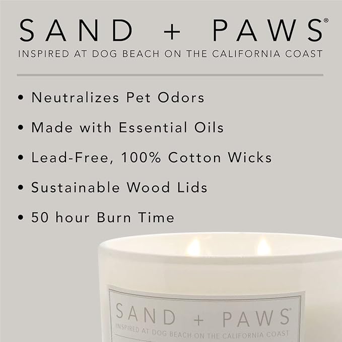 - PET HOUSEHOLD: Sand + Paws candles will neutralize and deodorize strong pet odors in your home. Cat Litter odor or Dog Fart smells will get eliminated.