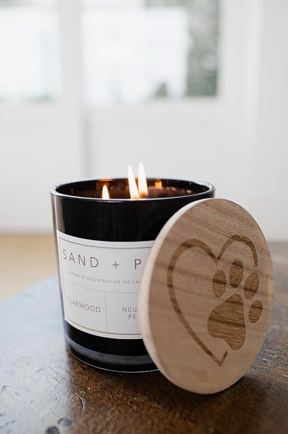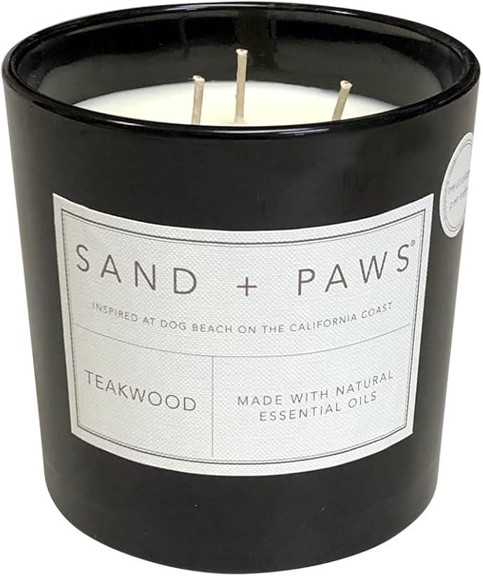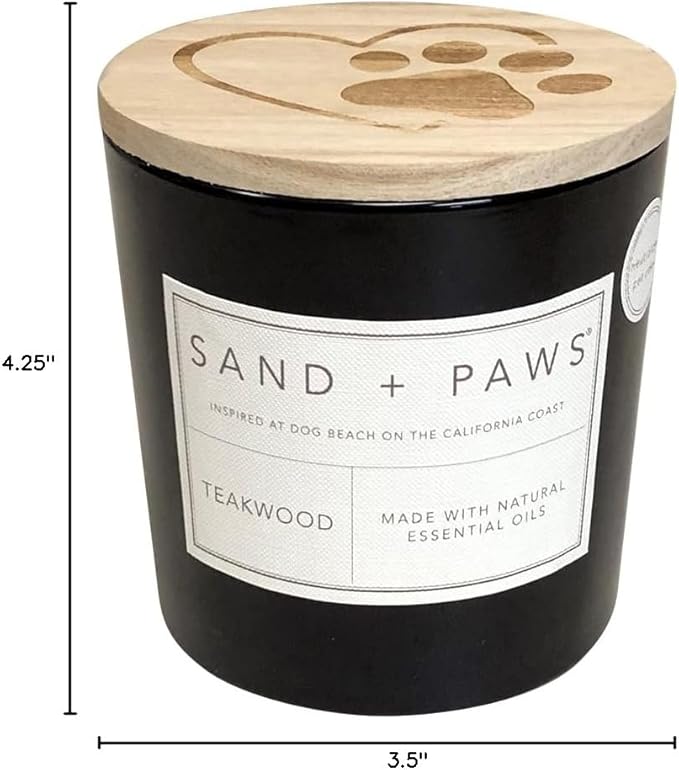 Sand + Paws Scented Candle - Teakwood - Additional Scents and Sizes –Luxurious Air Freshening Jar Candles Neutralize pet Odors and Enhance Home décor – 100% Cotton Lead-Free Wicks - 21 oz