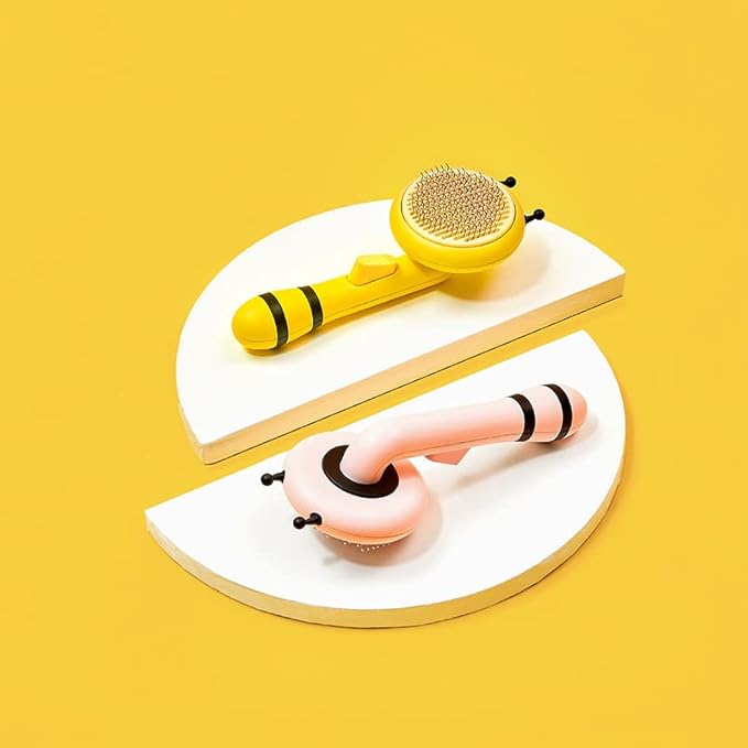 Cat Self Cleaning Slicker Brush, Grooming Brush, Short and Long Haired remover for Dogs and Cats, Slicker Removes Loose Undercoat & Tangled Hair (Bee-pink)