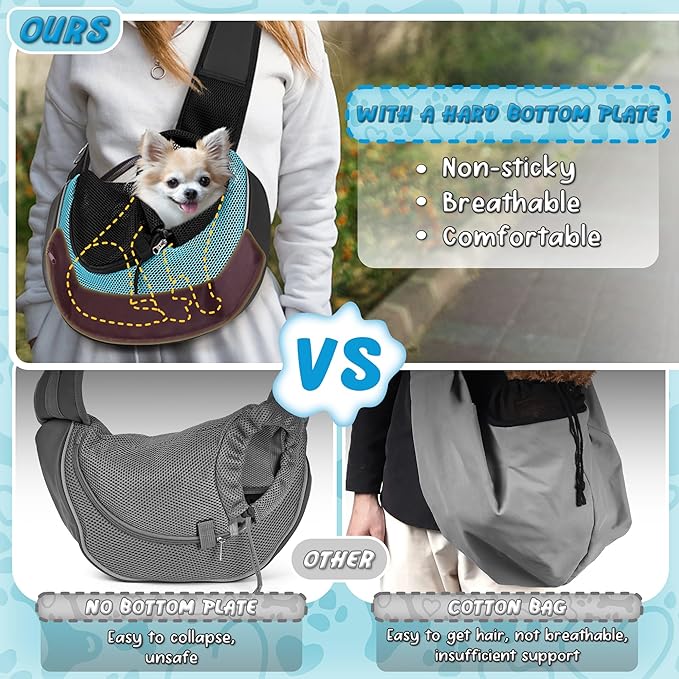 WOYYHO Dog Sling Carrier - Adjustable Strap,Hard Bottom,Large Zip Pocket,Breathable Mesh - Suitable for Puppies Outdoor Travel (Cyan M)