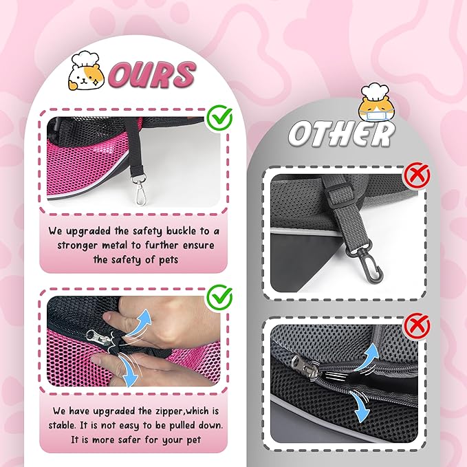 - Multi-safety Design: WOYYHO pet sling carrier has a metal safety buckle, prevents pets from jumping out, magic stick to avoid zips from sliding, the unique anti-pinch design can prevent pet hair from being caught by the zipper, and the reflective strip design makes it safer for you and your pets to go out at night